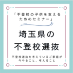 2024-07-29 / 最終更新日時 : 2024-09-02 nakamura 未分類 埼玉県の不登校選抜について 7月28日(日)に大宮ソニックシティで開催された埼玉県教育委員会主催「不登校の子供を支えるためのセミナー」が開催されました。 セミナーの内容 ★パネルディスカッション テーマは「不登校を振り返って、今、思うこと・伝えたい […]