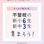 2025-02-10 / 最終更新日時 : 2025-04-06 nakamura 不登校 新小6生と新中3生を募集します‼ ※約7分で読める記事です。 新年度が迫り、不登校の子どもや保護者は不安が募って危機感まで感じている方もいらっしゃるかと思います。 「どうやって進学したらいいかわからない」「勉強する気が起きない」「でも不登校から脱したい」 […]