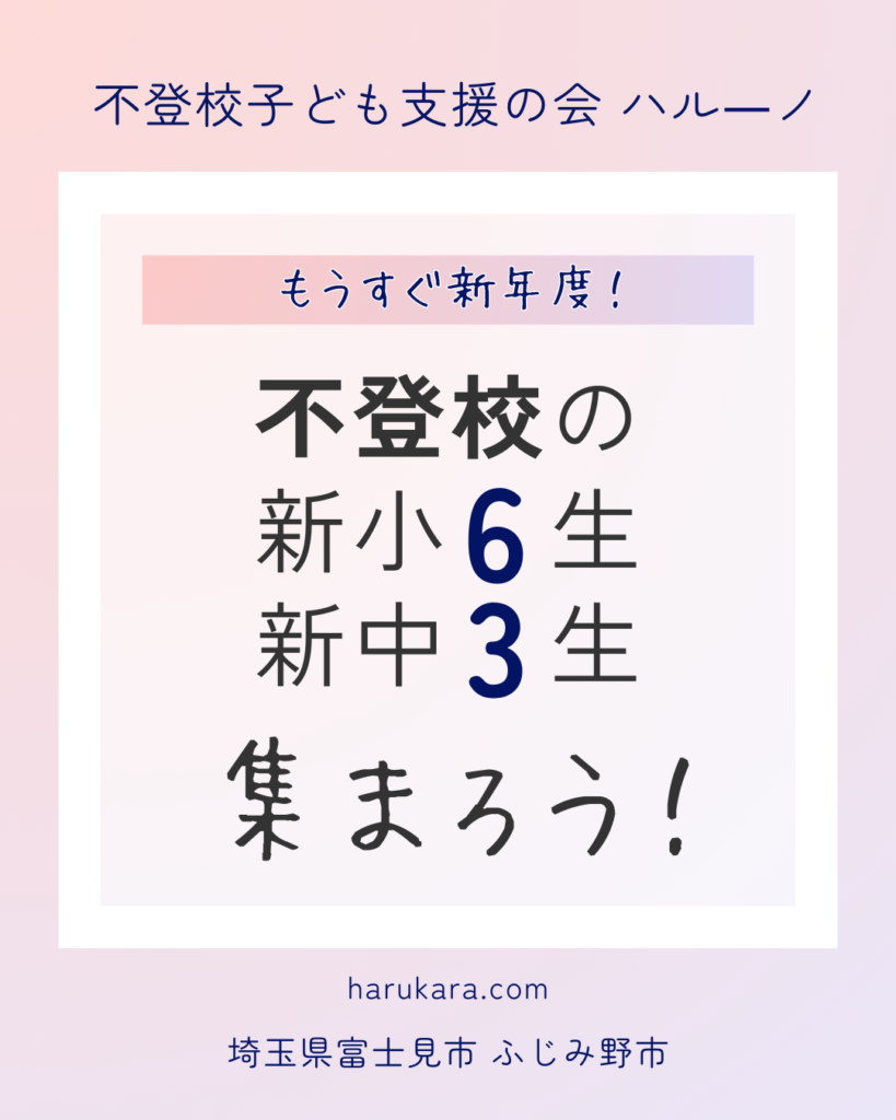 新年度が迫り、不登校の子どもや保護者は不安が募って危機感まで感じている方もいらっしゃるかと思います。